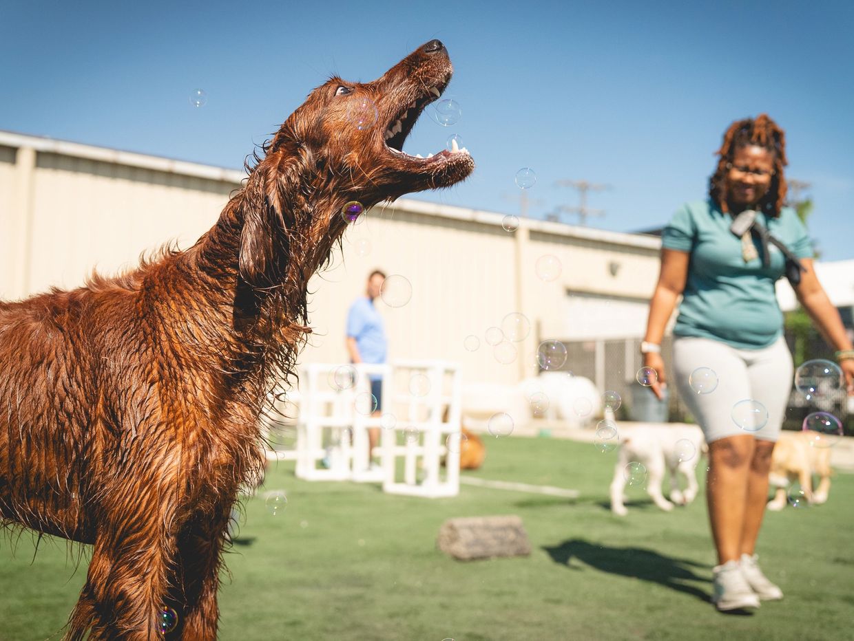 We offer All Day, Open Play Daycare in our 15,000 sq. ft. facility—a space designed for safe, structured fun. Dogs enjoy great opportunities for socialization with a variety of dogs and people. We also have a large outdoor area where your pup can do their “business” without jeopardizing potty training at home.
